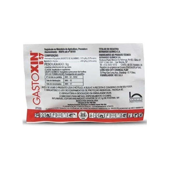 GASTOXIN é um inseticida e cupinicida, que contém como ingrediente ativo o Fosfeto de Alumínio, 570 g/Kg na formulação fumigante, do grupo químico inorgânico precursor da fosfina, indicado no controle de insetos