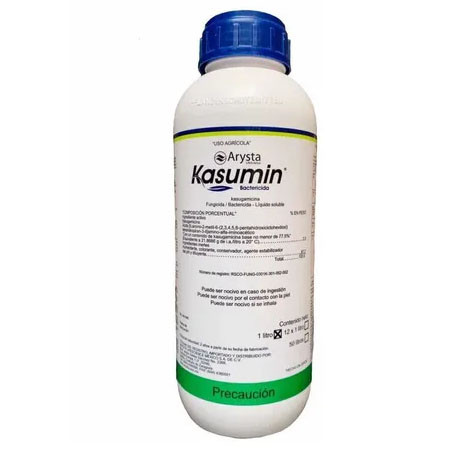 Kasumin é um fungicida à base de cobre que é utilizado para o controle de doenças fúngicas em diversas culturas.