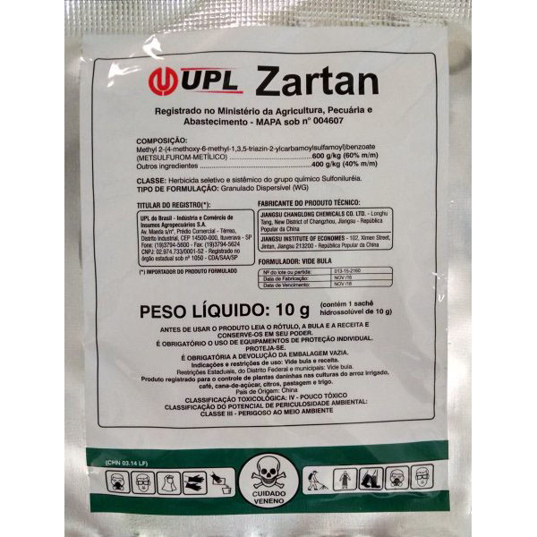 Zartan controla com grande eficácia um amplo espectro de plantas daninhas de folhas largas, podendo ser utilizado tanto em aplicação terrestre como aérea. Produto com ótimo custo benefício para pragas de gramado, pode ser misturado a outros tipos de herbicidas.